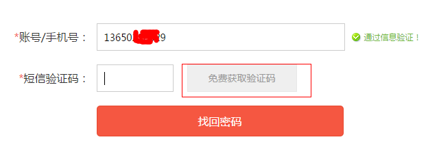 第二步,填写好用户名或手机号后,点击获取验证码后,填写手机短信上的验证码。