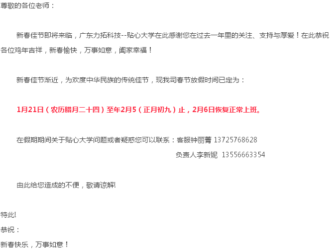 平台位置:平台首页建设经验 > 广东力拓科技2017年春节放假通知